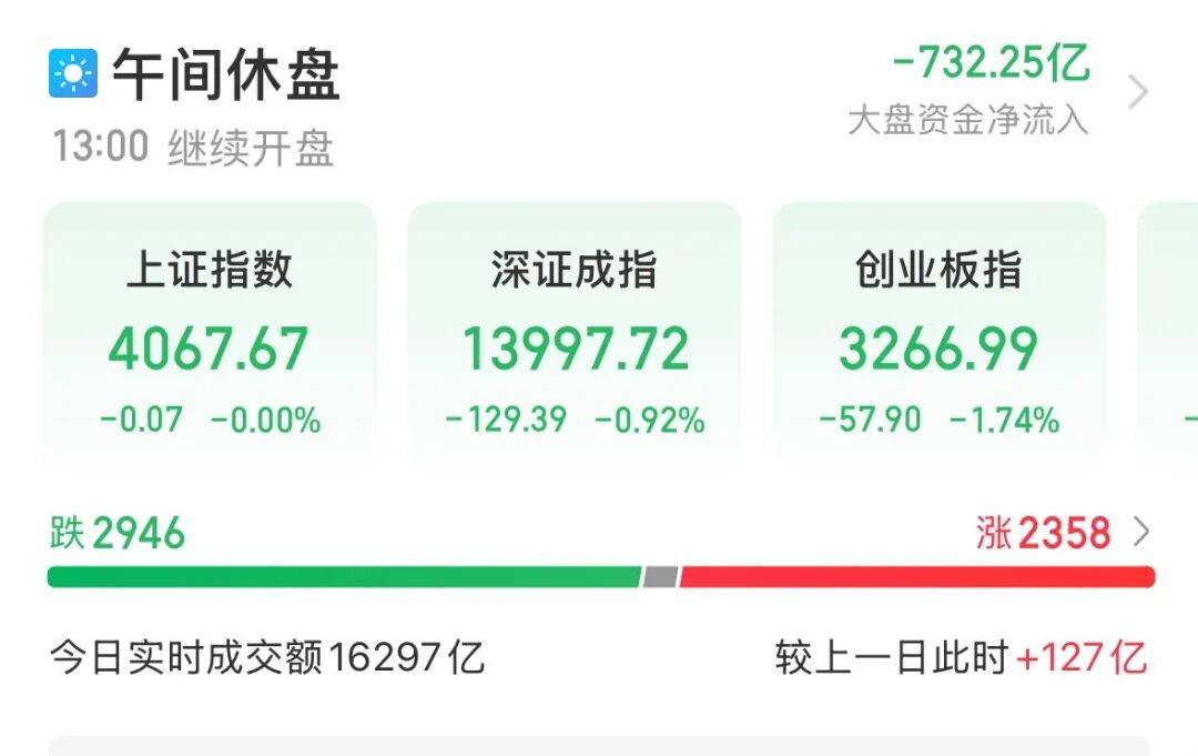2月4日早盘,A股震荡回落。截至午间收盘,上证指数微跌,报4067.67点;深证成指跌0.92%,创业板指跌1.74%,科创综指跌2.06%。沪深北三市半日成交16297亿元,中际旭创成交额达216.96亿元,位居A股第一。